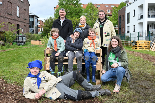 Im Schatten der Grevenbroicher Kirche St. Peter und Paul haben wir den Pfadfinderstamm St. Josef besucht. Dort im sogenannten „Gemeinschaftsgarten“ haben rund 30 Kinder einen Tag damit verbracht, Holzmöbel, Hochbeete, Vogelhäuschen und Insektenhotels zu bauen. Sichtbaren Spaß hatten die jungen Menschen an der handwerklichen Arbeit, die in ihrem Alltag heute fast nicht mehr vorkommt. Die Ergebnisse der Arbeit werden verschenkt, zum Beispiel an andere Kirchengemeinden.